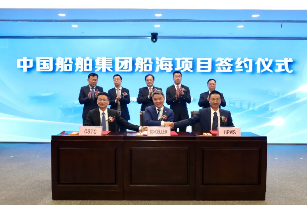 船舶建造合同簽約儀式上,在相關(guān)方領(lǐng)導(dǎo)的共同見(jiàn)證下,