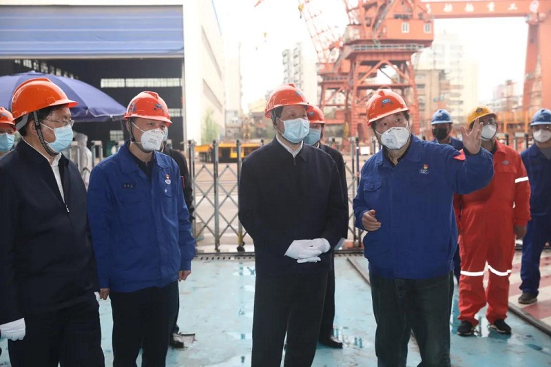 ????3月25日,湖北省委書記應勇到中國船舶集團有限公司所屬武船集團調(diào)研復工復產(chǎn)、加快發(fā)展情況。省委常委、武漢市委書記王忠林,副省長曹廣晶及省委、省政府有關(guān)部門負責同志參加調(diào)研。
