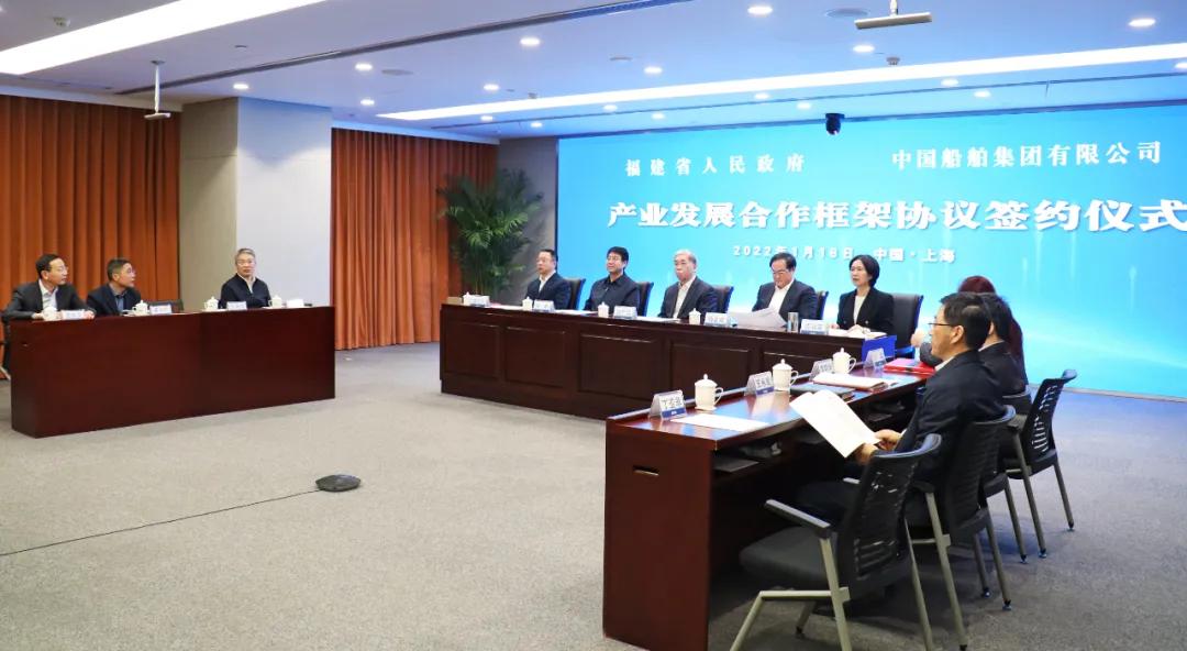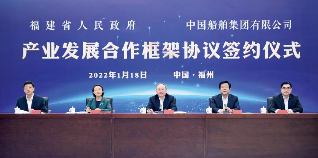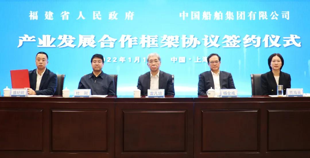 1月18日,中國(guó)船舶集團(tuán)有限公司與福建省人民政府通過“云簽約”方式簽署戰(zhàn)略合作協(xié)議。中國(guó)船舶集團(tuán)黨組書記、董事長(zhǎng)雷凡培,黨組副書記、總經(jīng)理?xiàng)罱鸪桑h組副書記、董事杜剛,黨組成員、總會(huì)計(jì)師賈海英,黨組成員、副總經(jīng)理盛紀(jì)綱;福建省委書記尹力,省委副書記、代省長(zhǎng)趙龍,省委常委、常務(wù)副省長(zhǎng)郭寧寧,省委常委、秘書長(zhǎng)吳偕林,副省長(zhǎng)康濤出席簽約儀式。盛紀(jì)綱、郭寧寧分別代表雙方在協(xié)議上簽字。