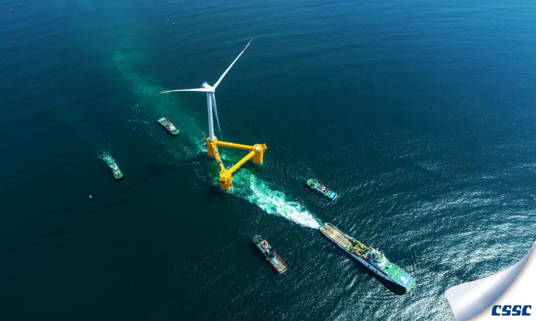 中國海裝建造的國內首臺深遠海浮式風電裝備——“扶搖號”從廣東茂名廣港碼頭正式起航。