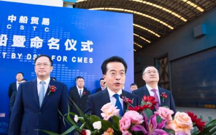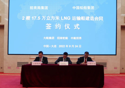 9月24日,中國(guó)船舶集團(tuán)旗下大船集團(tuán)聯(lián)合中船貿(mào)易為招商局集團(tuán)旗下招商輪船建造的30萬(wàn)噸VLCC “新伊敦”輪正式命名交付。同日,大船集團(tuán)聯(lián)合中船貿(mào)易成功承接了招商輪船2艘17.5萬(wàn)立方米大型LNG運(yùn)輸船新造項(xiàng)目。中國(guó)船舶集團(tuán)黨組副書記、總經(jīng)理?xiàng)罱鸪?,黨組成員、副總經(jīng)理孫偉,招商局集團(tuán)黨委書記、董事長(zhǎng)繆建民,黨委副書記、總經(jīng)理胡建華,紀(jì)委書記、董事段湘暉,黨委委員、副總經(jīng)理李百安出席儀式??娊駷樾麓?,楊金成、胡建華在儀式上致辭,段湘暉為新船砍纜。