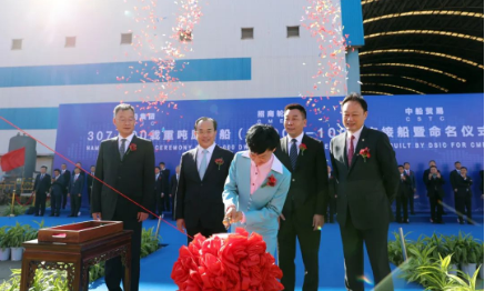 招商局集團(tuán)黨委書記、董事長(zhǎng)繆建民為新船命名
