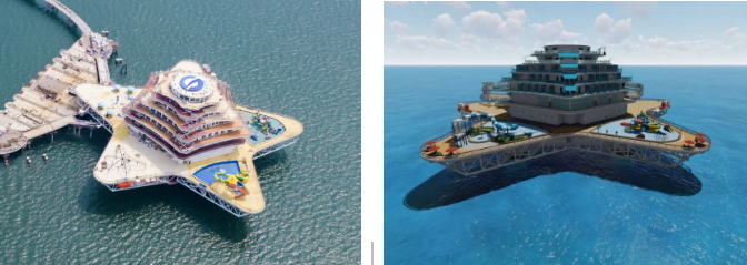 以濱海城市為依托,該方案重點建設需求旺盛、基礎好、見效快的“海洋文旅+深海養(yǎng)殖+海上風電+海洋信息管網(wǎng)”4個要素單元,釋放旅游、養(yǎng)殖、綠色能源耦合效應。綜合體采用模塊化設計、區(qū)域化協(xié)同部署,由濱海向深遠海帶狀輻射,布局建設游輪游艇群、養(yǎng)殖文旅平臺、深海養(yǎng)殖產(chǎn)業(yè)園、分布式海上風電場及智能微電網(wǎng)、深海移動養(yǎng)殖工廠和海洋信息管網(wǎng)等風漁文旅結合項目。以郵輪游艇連接海上設施,構建海上旅游娛樂交通網(wǎng),以中小型郵輪航線實現(xiàn)沿海城市綜合體間串聯(lián),構建沿海城市海上旅游觀光帶,同時培育郵輪與康養(yǎng)休閑岸海互動融合模式,捕捉、帶動、滿足多元化潛在消費需求,打造風漁文旅等一二三產(chǎn)業(yè)融合新業(yè)態(tài),形成沿海藍色海洋經(jīng)濟帶。