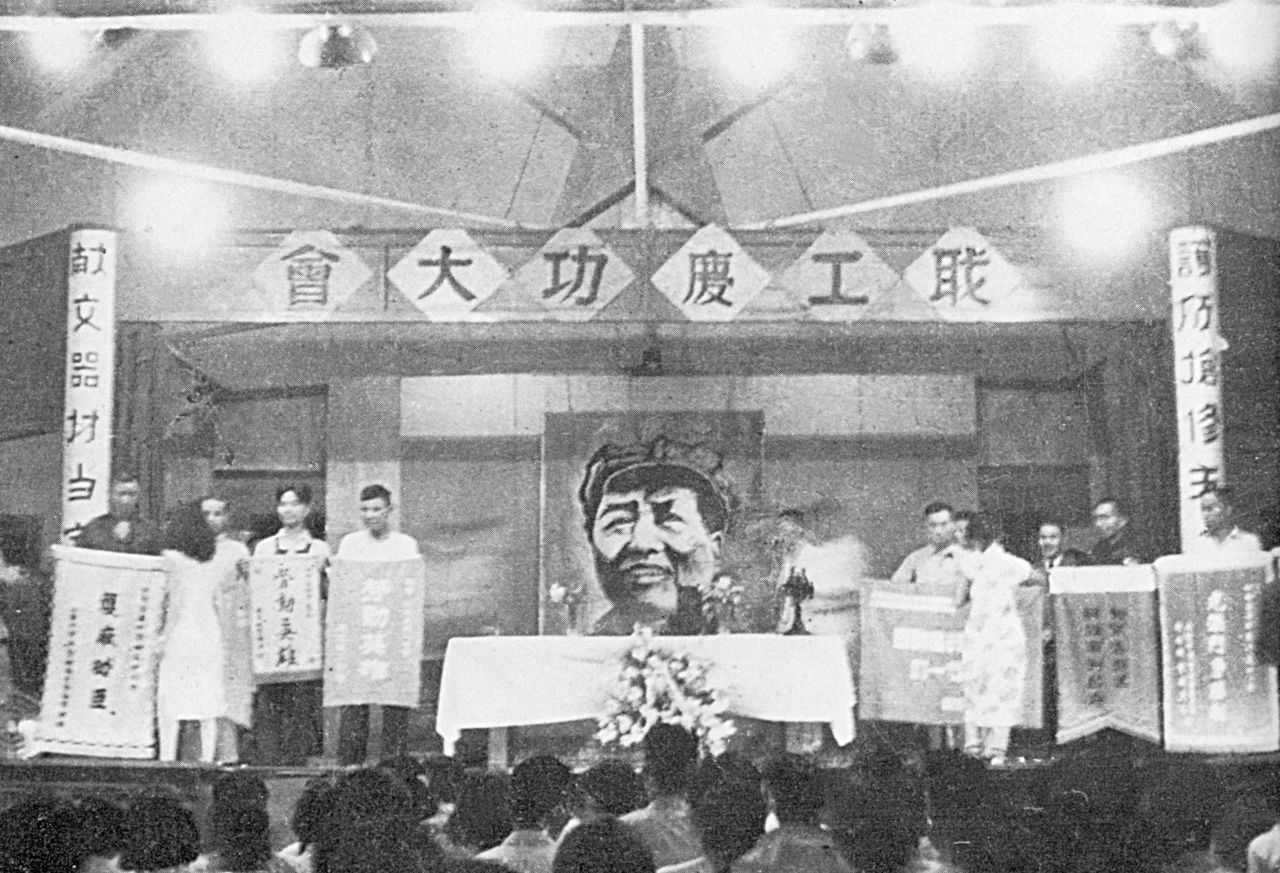 1949年7月上海,1949年7月23日,江南造船所舉行“職工慶功大會(huì)”。上海市市長(zhǎng)兼軍管會(huì)主任陳毅、副市長(zhǎng)曾山、華東海軍司令員張愛(ài)萍、上海市總工會(huì)主席劉長(zhǎng)勝等出席了大會(huì)。會(huì)上總結(jié)修復(fù)廠房設(shè)備的經(jīng)驗(yàn),宣布恢復(fù)生產(chǎn)表彰有功人員。全所有 134人被評(píng)為一、二、三等功臣受到表彰。