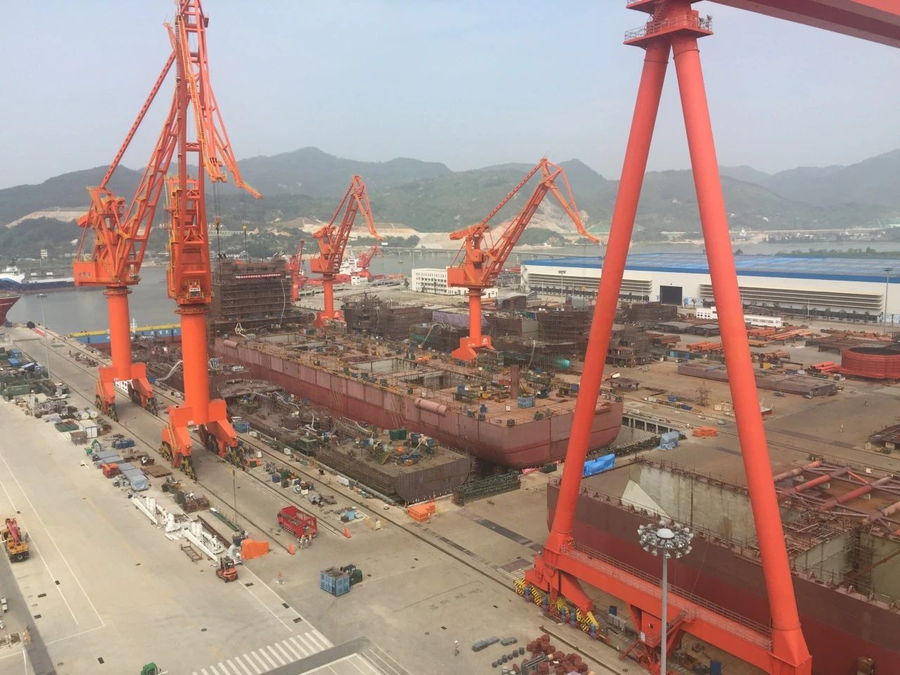 2016年廣州,2016年,廣船國(guó)際建造了華南最大900噸龍門(mén)吊,大分段輕輕一吊就起來(lái)。如今廣船國(guó)際的造船塢可以建造40萬(wàn)噸級(jí)以下船舶。