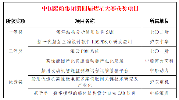 2025年1月3日,國務(wù)院國資委正式公布第四屆中央企業(yè)熠星創(chuàng)新創(chuàng)意大賽獲獎名單。中國船舶集團(tuán)參賽項目榮獲一等獎1項、三等獎3項、優(yōu)秀獎3項,優(yōu)秀導(dǎo)師4名,集團(tuán)公司榮獲“優(yōu)秀組織單位”榮譽(yù)稱號。