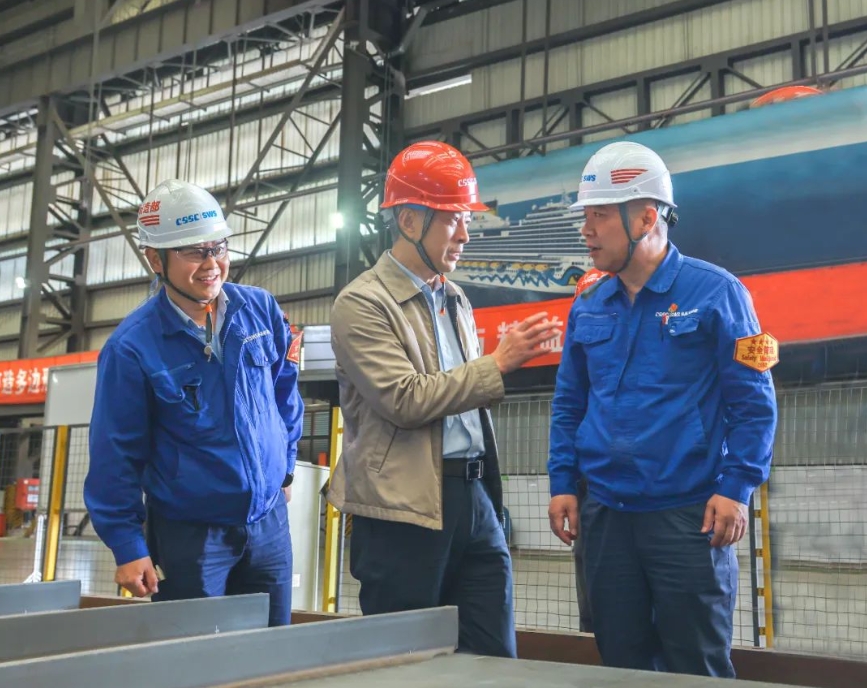 在相關二級管理單位,徐鵬調研了相關重點實驗室、車間和在建的國產大型郵輪“愛達·花城號”,與一線職工深入交流,并聽取了單位負責人關于經營生產、公司治理、深化改革、隊伍建設、黨的建設等方面情況匯報。