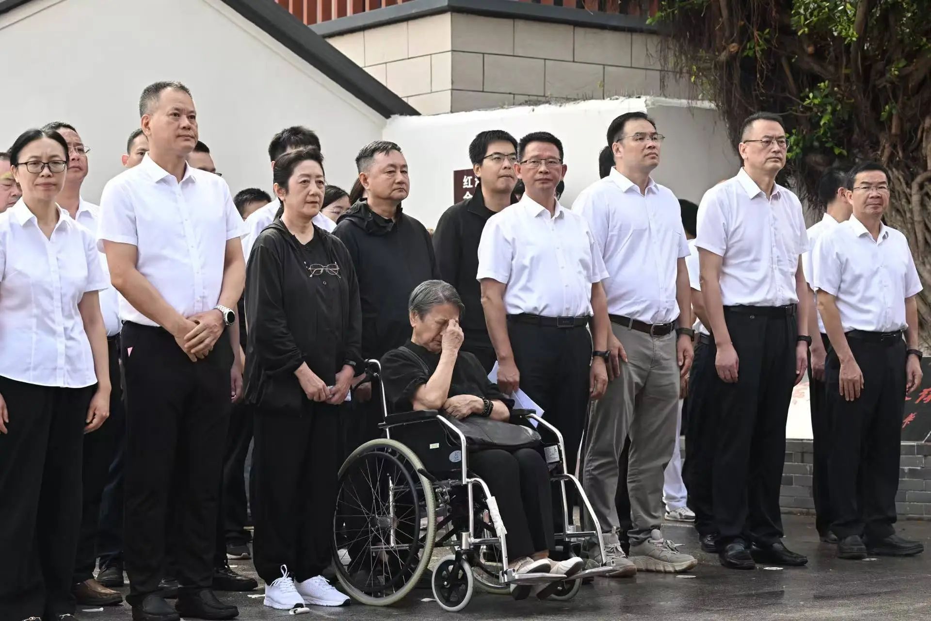 9時,人們在黃旭華院士少年時代求學成長的紅樓前舉行了追思儀式?,F場,黃旭華院士的遺像擺放在紅樓大門前,黃旭華院士家人和生前同事、好友以及家鄉干部群眾、師生代表一起深情回顧了他的一生。隨后,大家一起進入紅樓參觀紀念黃旭華院士生平事跡展。