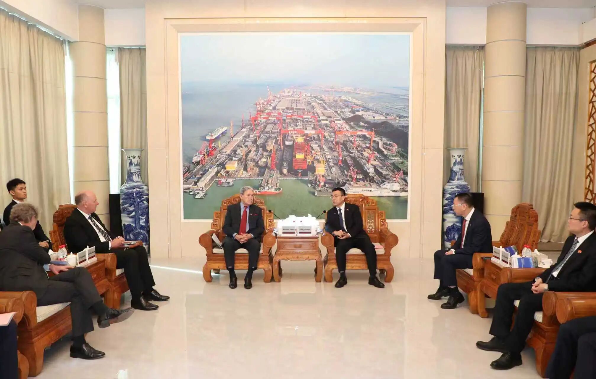 新西蘭外交部兼鐵道部部長Winston Peters(溫斯頓·彼得斯)、新西蘭FHL公司董事長Chris McKenzie(克里斯·麥肯齊)、中船集團(tuán)副總經(jīng)理彭原璞出席簽約儀式并致辭,新西蘭駐華大使Jonathan Austin(喬·文博)、駐廣州總領(lǐng)事Michael Zhang(張典)等出席簽約儀式。