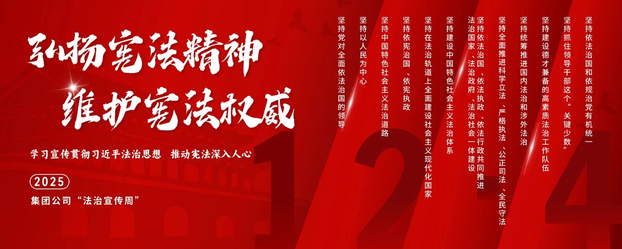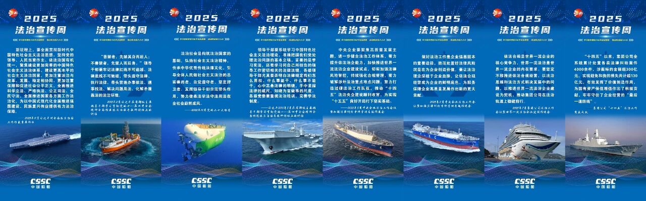 今年12月4日是第十二個(gè)國(guó)家憲法日。中國(guó)船舶集團(tuán)有限公司深入貫徹落實(shí)中央宣傳部、司法部、全國(guó)普法辦《2025年全國(guó)“憲法宣傳周”工作方案》部署要求,以“學(xué)習(xí)宣傳貫徹習(xí)近平法治思想,推動(dòng)憲法深入人心”為主題,精心組織開(kāi)展2025年法治宣傳周系列活動(dòng)?;顒?dòng)將學(xué)習(xí)貫徹習(xí)近平法治思想、習(xí)近平文化思想及憲法精神,與法治央企建設(shè)要求以及集團(tuán)“懸規(guī)植矩 循序善治”特色法治文化深度融合,為加快建設(shè)世界一流船舶集團(tuán)厚植法治土壤、注入強(qiáng)勁法治動(dòng)能。