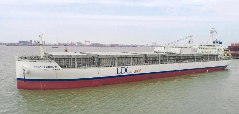 ????3月27日,中國船舶集團所屬中船澄西改裝的橙汁運輸船“托科皮亞”號正式交付 。“托科皮亞”號是由一艘3.6萬噸多用途散貨船改裝的橙汁運輸船,該船總長176.65米,型寬30米,型深15米,配備15個獨立液貨罐;機艙新加裝一套配備選擇性催化還原系統(SCR)的發電機以及冷藏系統、卸貨房系統,具有節能環保的優點。
