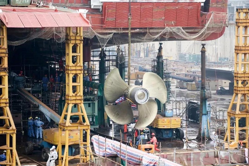????廣船國際自2月10日起復(fù)工復(fù)產(chǎn),其中阿爾及利亞客滾船建造是廣船國際重點(diǎn)工作之一。廣船國際先后克服勞動力不足和資材供應(yīng)受阻等客觀困難,逆“疫”而上,確保該船順利出塢。