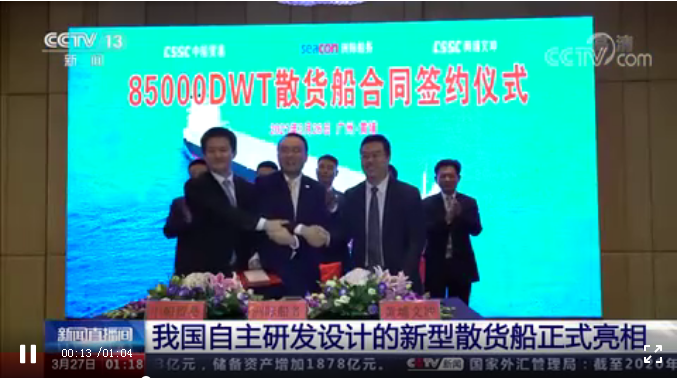 3月26日,中國船舶集團旗下黃埔文沖舉行發(fā)布會,正式推出該公司首艘全過程自主設計,并獲得訂單的散貨船85000載重噸(DWT)散貨船船型。