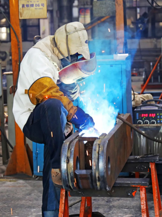 在38℃的高溫下,“蒙面焊將”堅守工作崗位,用手中的焊槍把滿身的汗水化為激情與焊花一起綻放。