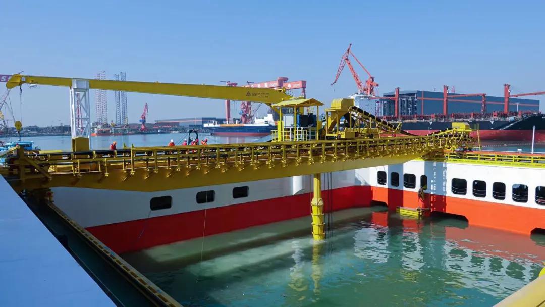 # 首創(chuàng)了“浮式自動化輸料母船+坐底整平架”的系統(tǒng)形式;