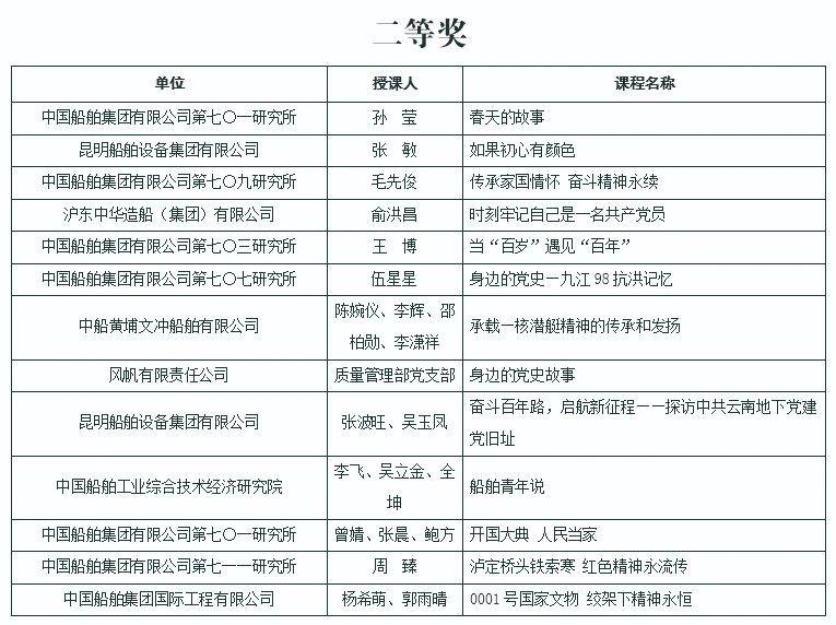 為慶祝中國共產(chǎn)黨成立100周年,深入推進(jìn)黨史學(xué)習(xí)教育,由中國船舶集團(tuán)黨群工作部主辦,中國船舶集團(tuán)黨校承辦的慶祝中國共產(chǎn)黨成立100周年黨課評選活動(dòng)結(jié)果今天正式揭曉。
