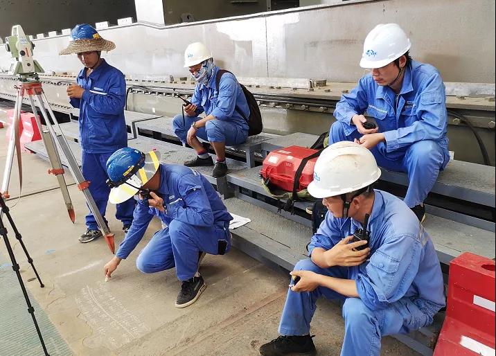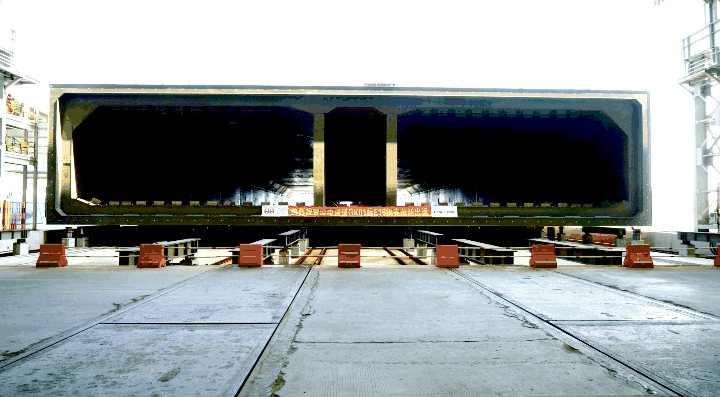 E15管節(jié)鋼殼于8月23日過(guò)駁交運(yùn)。緊接著,E16管節(jié)鋼殼于8月24日完成縱移,于9月24日通過(guò)廠內(nèi)聯(lián)合驗(yàn)收,從縱移到完成交付僅用時(shí)1個(gè)月,創(chuàng)造了目前為止的最短周期紀(jì)錄。