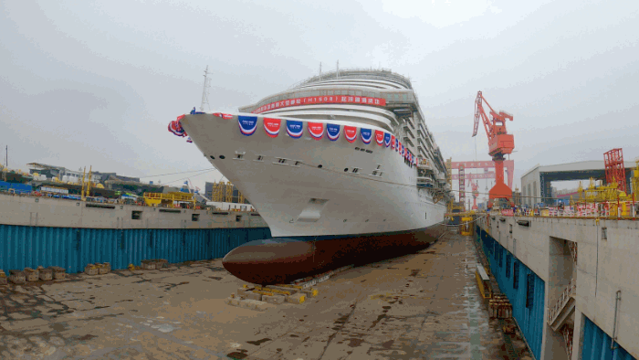 2021年12月17日,由中國船舶集團旗下外高橋造船建造的中國首制大型郵輪順利實現塢內首次起浮里程碑節點,宣告結構和舾裝建造的“上半場”圓滿收官!