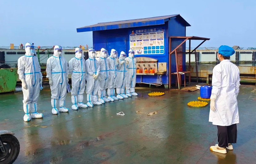 在每一艘船舶即將駛向交付目的地時(shí),中船廣西防疫辦專門組織專業(yè)的醫(yī)護(hù)人員對(duì)參與送船的員工進(jìn)行防護(hù)培訓(xùn),并開展應(yīng)急演練,同時(shí)要求船舶靠岸時(shí)統(tǒng)一穿著防護(hù)服,無指令不得上岸。此外,該公司還安排專車對(duì)送船員工進(jìn)行點(diǎn)對(duì)點(diǎn)接送,杜絕一切與外界接觸的可能。