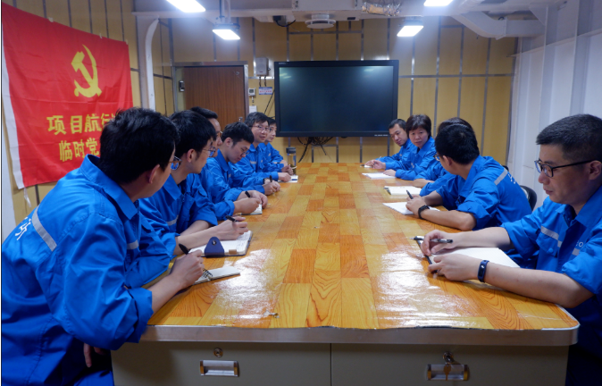 毛獻(xiàn)群在艦上同項(xiàng)目組成員一起討論技術(shù)問(wèn)題