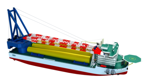 該船船長186米,寬48米,型深16米,滿載排水量約90000余噸。起重機(jī)采用單舷側(cè)布置設(shè)計(jì),起吊高度可達(dá)主甲板以上145米,相當(dāng)于50層摩天大廈。還配備有DP2級動(dòng)力定位系統(tǒng),可實(shí)現(xiàn)深遠(yuǎn)海快速、精確定位。能夠在海上風(fēng)電場進(jìn)行各項(xiàng)風(fēng)電工程作業(yè),主要包括10兆瓦及以下海上風(fēng)機(jī)的基座、支撐塔架、機(jī)艙及葉片的吊裝和風(fēng)機(jī)基礎(chǔ)等施工作業(yè),以及其他海上吊裝或支持作業(yè)。