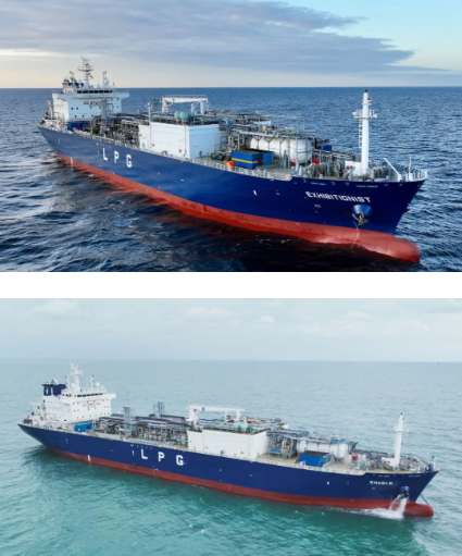 該型船總長159.9米,型寬 25.6米,型深16.5米;船體內布置三個設計溫度為-104℃的C型雙耳罐;入級英國勞氏船級社,由TGE提供液貨系統,屬于江南造船“Camel 22E”精品船型。“Camel 22E”是江南造船知名品牌“Lusitano”系列的優化升級版船型,相較于原船型,“Camel 22E”減少了一個液罐但增加了1000立方米的貨物艙容,且在設計航速不變的情況下,油耗大幅降低。