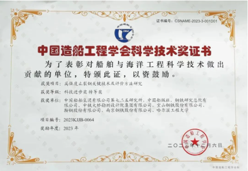 近日,中國造船工程學(xué)會發(fā)布了2023年科學(xué)技術(shù)獎評審結(jié)果,中國船舶集團(tuán)七二五所申報的“高強(qiáng)度止裂鋼關(guān)鍵技術(shù)及評價方法研究”榮獲科技進(jìn)步獎特等獎。項目團(tuán)隊歷經(jīng)十余年技術(shù)攻關(guān),在國際上首次提出了止裂性能大尺寸雙重拉伸試驗方法和小尺寸替代試驗方法,并成功將其納入國際船級社協(xié)會(IACS)通用規(guī)范,極大提升了我國在該領(lǐng)域的國際話語權(quán)和技術(shù)影響力。