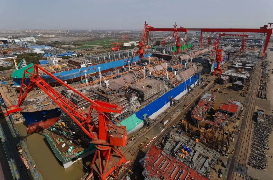 近日,在中船長興造船基地中國船舶集團旗下滬東中華2號船塢,首次呈現(xiàn)了4艘174000立方米大型液化天然氣(LNG)運輸船同塢建造,其中2艘同日出塢、2艘半船起浮的盛景。