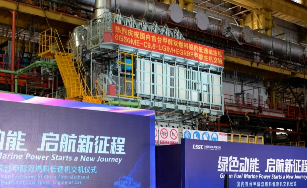 5月18日,由中國船舶集團旗下中船發動機研制的甲醇雙燃料低速機6G50ME-C9.6-LGIM+EGRBP成功交驗,標志著中船發動機具備了甲醇雙燃料低速機持續交付能力。