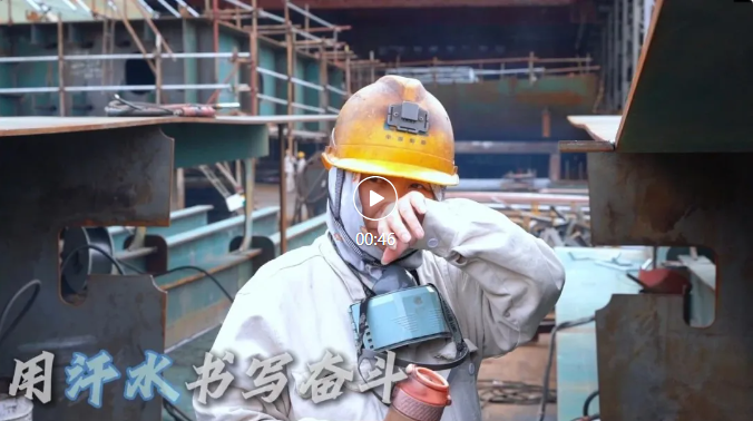 江南造船——制造三部總組作業區電焊三組劉士里在酷熱天氣下“全副武裝”焊接。