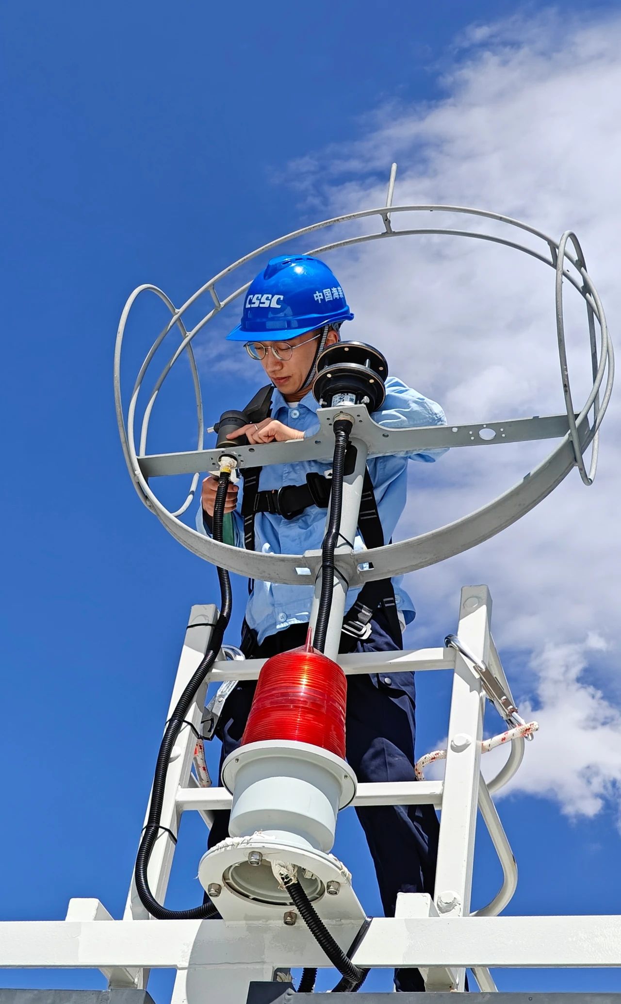 中船發動機——調試人員頂著高溫在認真安裝傳感器,汗水濕透了衣裳。