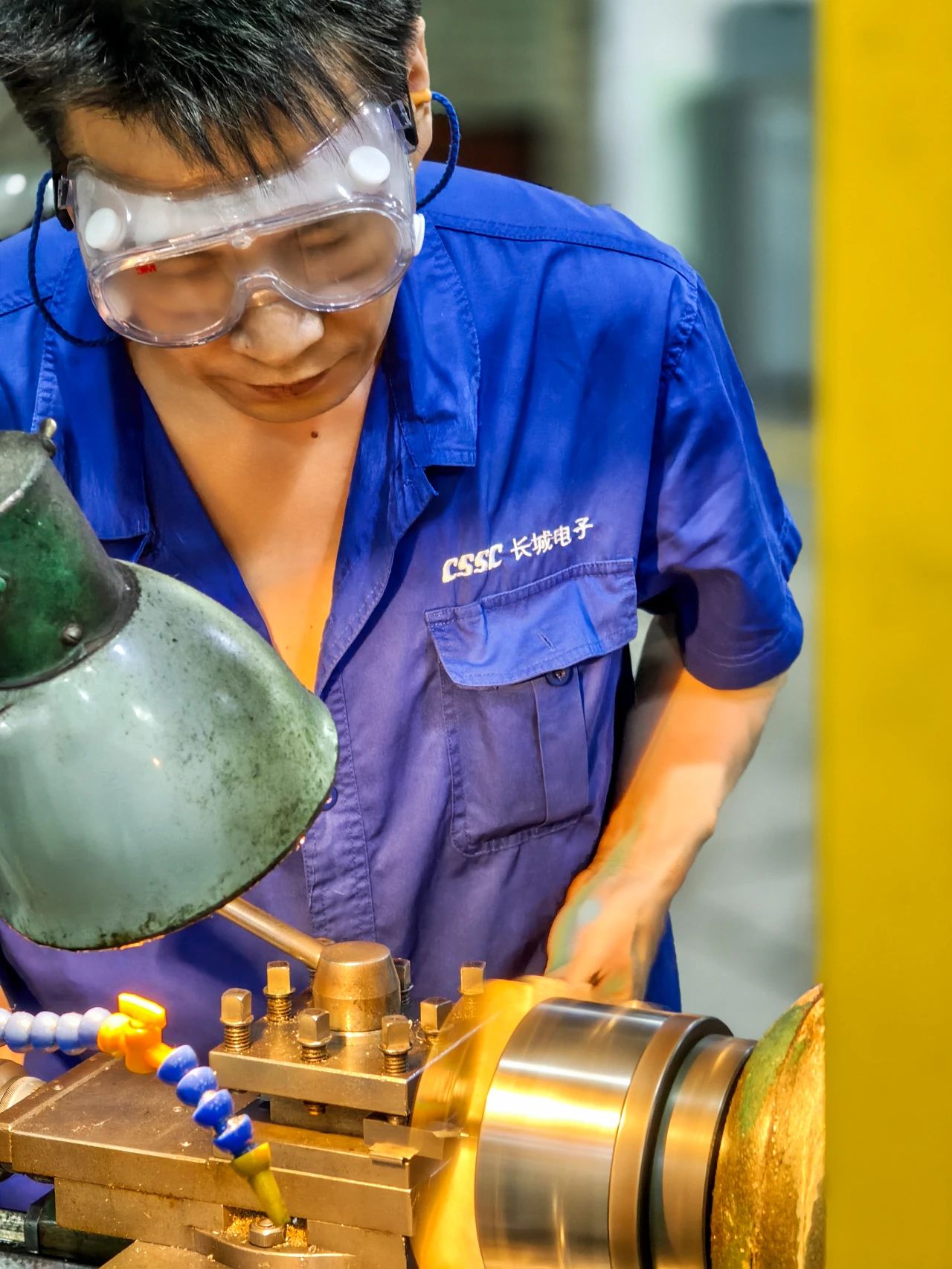 武昌造船——機電事業部劃線鉗工翁方成顧不上滿臉的汗水,全神貫注為水工閘門結構部件劃上機械加工參考線。