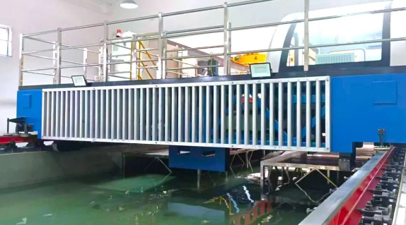 中山大學“拖曳水池建造” 項目包含了拖曳水池拖車、軌道系統(tǒng)、造消波系統(tǒng)、造風系統(tǒng)等關鍵試驗設備。拖車實現從0.02米/秒到8米/秒的高精度、高速比調速,滿足拖曳水池流速儀標定和船舶試驗的雙重需求;造風系統(tǒng)實現了風譜模擬能力。