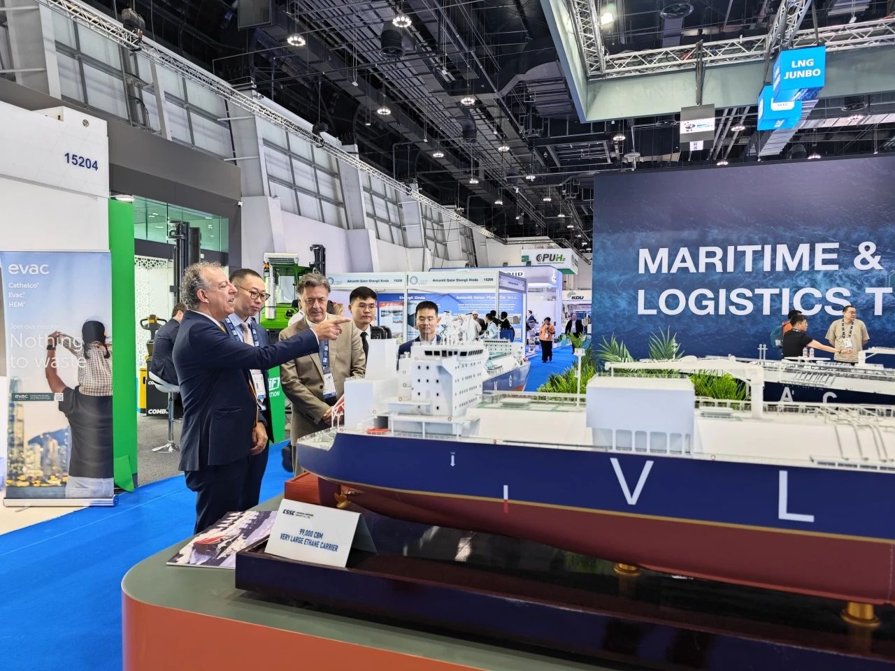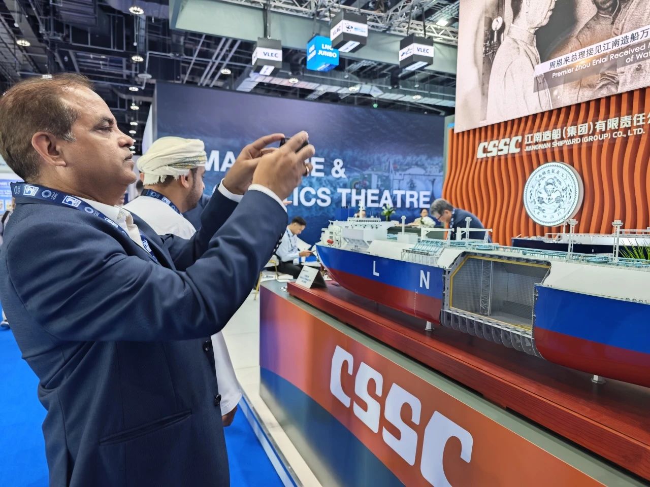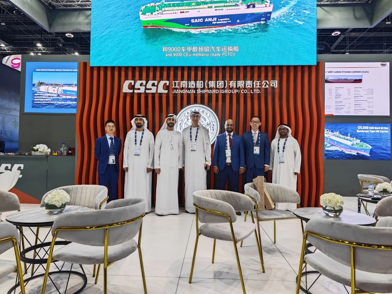 在此次展會上,江南造船展出了自主研發(fā)設(shè)計的17.5萬立方米液化天然氣(LNG)運輸船、目前世界上最大艙容的99000立方米超大型乙烷運輸船(VLEC)以及93000立方米超大型液氨運輸船(VLAC)等船型,憑借自身優(yōu)勢及特色展臺布置吸引了眾多油氣公司、船東、船級社、中間商、船廠、供應(yīng)商等駐足觀看,同時也與其進行了廣泛和深入的交流。值得一提的是,中國駐阿聯(lián)酋大使一行也到訪江南造船展臺,詳細詢問江南造船的產(chǎn)品特點、技術(shù)和建造優(yōu)勢。