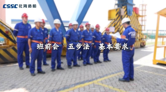 一點名,二講評,三交底,四確認,五承諾。北海造船制作了班前會“五步法”指導(dǎo)視頻及手冊,以直觀的聲畫形式,精準指導(dǎo)各個班組規(guī)范召開班前會。目前,北海造船1000余個班組已全面落實班前會“五步法”管理要求。