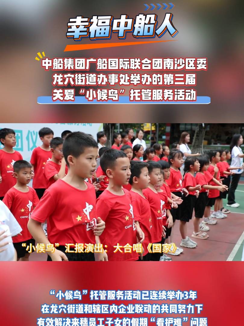 廣船國(guó)際“小候鳥”托管服務(wù)活動(dòng)已連續(xù)舉辦3年,切實(shí)有效解決了來穗員工子女的假期“看護(hù)難”問題,提高員工扎根南沙、逐夢(mèng)南沙的歸屬感與幸福感,是廣船國(guó)際聚焦“幸福中船人”目標(biāo)的生動(dòng)實(shí)踐、“我為群眾辦實(shí)事”及“六船同心”黨建品牌“民生號(hào)”建設(shè)的重要內(nèi)容。