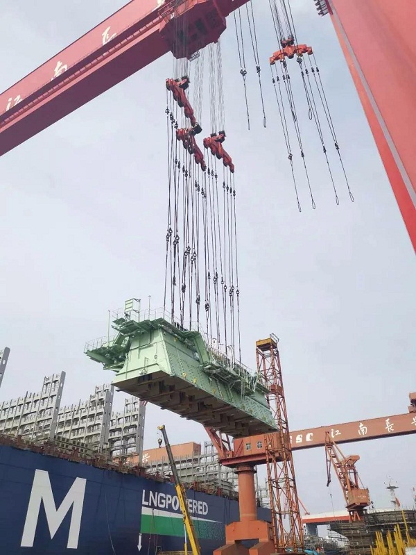 ????這次吊裝的成功,為江南造船大型主機吊裝積累了經驗,標志著江南造船的吊裝水平達到了國際最先進水平。
