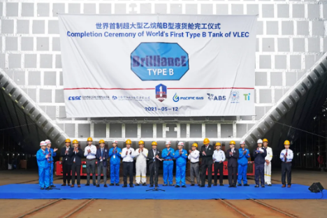 5月12日,中國船舶集團旗下江南造船舉行了世界首制99000立方米超大型液化乙烷運輸船 (VLEC) 首個B型液貨艙完工儀式,標志江南造船99000立方米VLEC建造實現關鍵技術突破,其自主研發的“BrilliancE?”貨物圍護系統實現工程化和節拍化生產。
