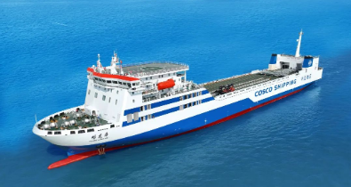 11月11日,由中國船舶集團旗下廣船國際為中遠海運集團旗下中遠海運客運建造的3000米車線多用途貨滾船2號船“暢龍?!碧柡炞纸桓丁?