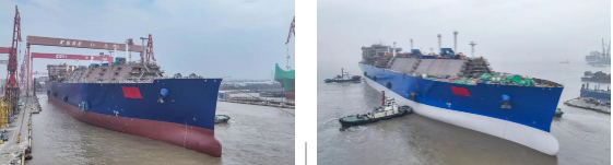 近日,在中船長興造船基地中國船舶集團(tuán)旗下滬東中華2號(hào)船塢,首次呈現(xiàn)了4艘174000立方米大型液化天然氣(LNG)運(yùn)輸船同塢建造,其中2艘同日出塢、2艘半船起浮的盛景。