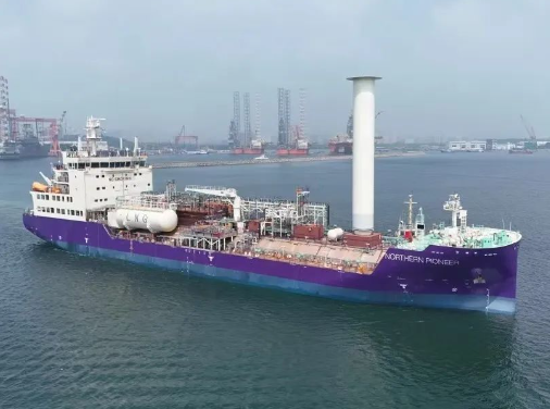 近日,中國船舶集團(tuán)旗下大連造船為挪威北極光公司建造的全球首制7500立方米液態(tài)二氧化碳運輸船1號船完成柴油試航任務(wù)。