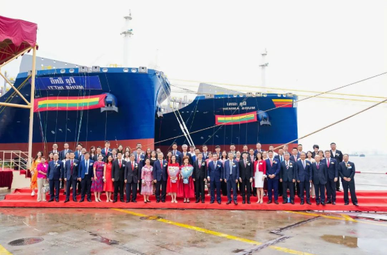 9月3日,中國船舶集團(tuán)旗下外高橋造船聯(lián)合中船貿(mào)易為泰國RCL公司建造的系列7000TEU集裝箱船的第二艘船“ITTHI BHUM”號、第三艘船“HEMMA BHUM”號命名交付。