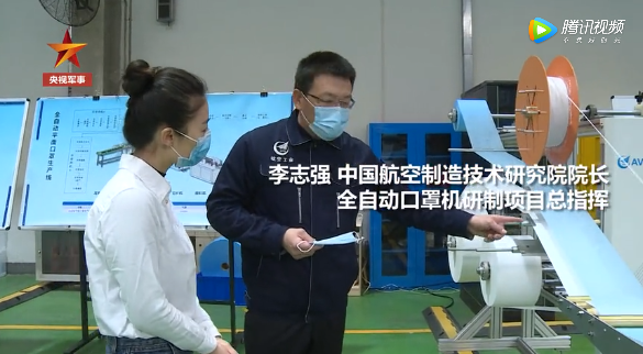 ????航空工業集團16天即研制出首臺口罩機基本型樣機,7天即研制出首臺壓條機。其中,全自動口罩機達到100片/分鐘的設計指標。