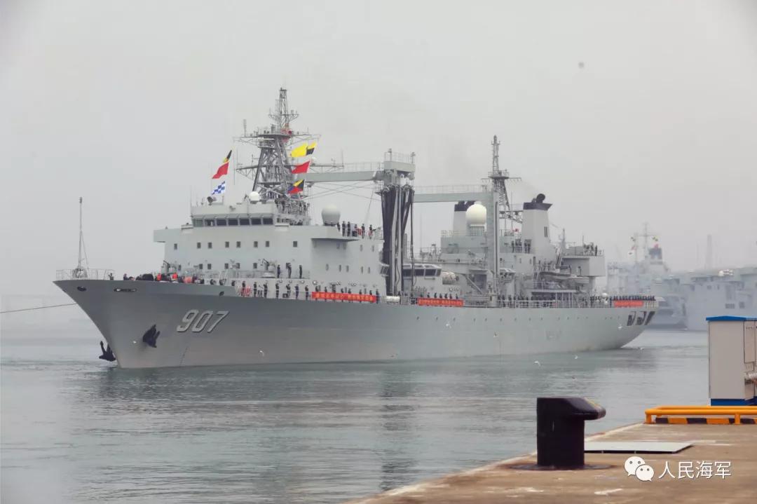 綜合補給艦駱馬湖艦,舷號907,是我國自行設計制造的新型遠洋綜合補給艦,由中國船舶集團七〇八所設計、滬東中華建造。該艦具備橫向、縱向、立體補給能力,可同時對多艘不同類型艦艇進行補給,具有較強的遠洋綜合補給能力。入列以來,曾執行過第31批護航等多項重大任務。