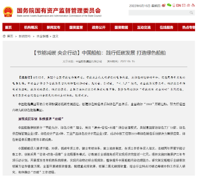 國資委網站|中國船舶:踐行低碳發展 打造綠色船舶