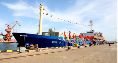 2020年,大連造船將散貨船改裝而成的“民德”號交付。這是具有完全自主知識產權的舷側開孔式養殖工船。交船的同時,簽約了10+8艘大型養殖工船項目。