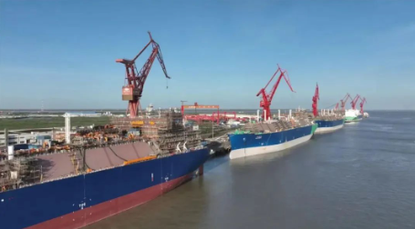 “瓦片法”使焊接一次性達到100%無漏點,隨著“瓦片法”的普及,LNG運輸船建造效率大大提高,以前一個液貨艙需要60人焊接一個月,現在同樣人數,不到兩周就能完工,年造船量翻了一倍。