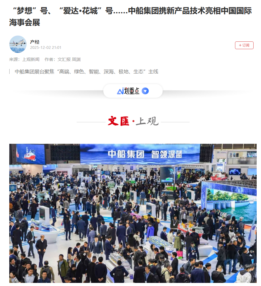 12月2-5日,2025中國國際海事會展期間,中國船舶集團有限公司攜眾多新產(chǎn)品新技術精彩亮相,并圍繞六大領域舉行了40多場發(fā)布及推介活動。