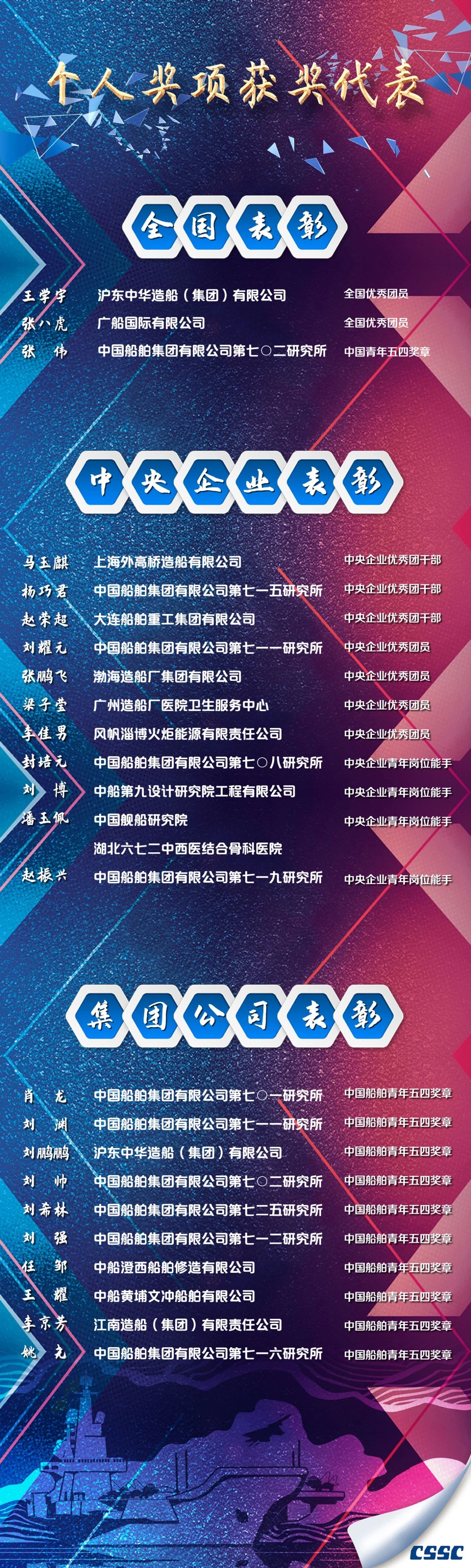 有的在生產(chǎn)一線不畏艱難、埋頭苦干,有的在服務(wù)集團(tuán)發(fā)展的最基層不計(jì)得失、任勞任怨。他們把個(gè)人理想融入世界一流船舶集團(tuán)的偉大事業(yè)中,書寫著新時(shí)代的青春答卷,彰顯著新時(shí)代青年的責(zé)任與擔(dān)當(dāng),為船舶青年作出了榜樣,樹立了標(biāo)桿。