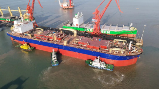 12月17日,中國船舶集團旗下黃埔文沖為大百匯實業集團有限公司批量建造的10萬噸級深遠海大型智能養殖工船首制船順利出塢。